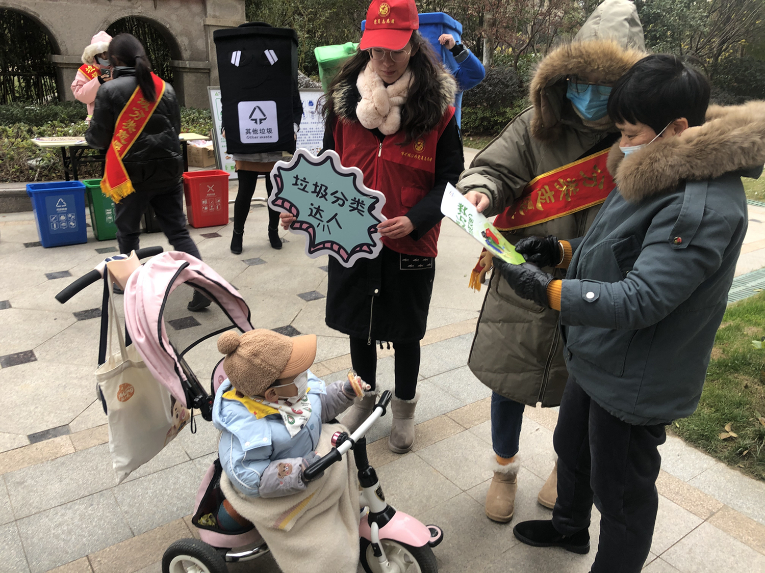 活動(dòng)中,志愿者們身穿“可回收物”、“廚余垃圾”、“有害垃圾”、“其他垃圾”四色玩偶服,通過向居民發(fā)放宣傳單頁、開展“垃圾分分樂”、“垃圾分類跳棋”游戲等方式,向其宣傳垃圾分類相關(guān)知識?;顒?dòng)現(xiàn)場氣氛火熱,社區(qū)居民不畏嚴(yán)寒,紛紛從家中拿出廢舊電池、舊水銀溫度計(jì)等有害垃圾換取垃圾袋。