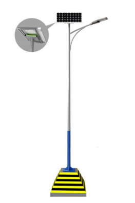 5 燈桿(含支架) 高7米,錐型A字臂燈桿,燈臂長1.2m,上口徑70mm,下口徑160mm,壁厚不低于3mm,上白下藍(lán)。