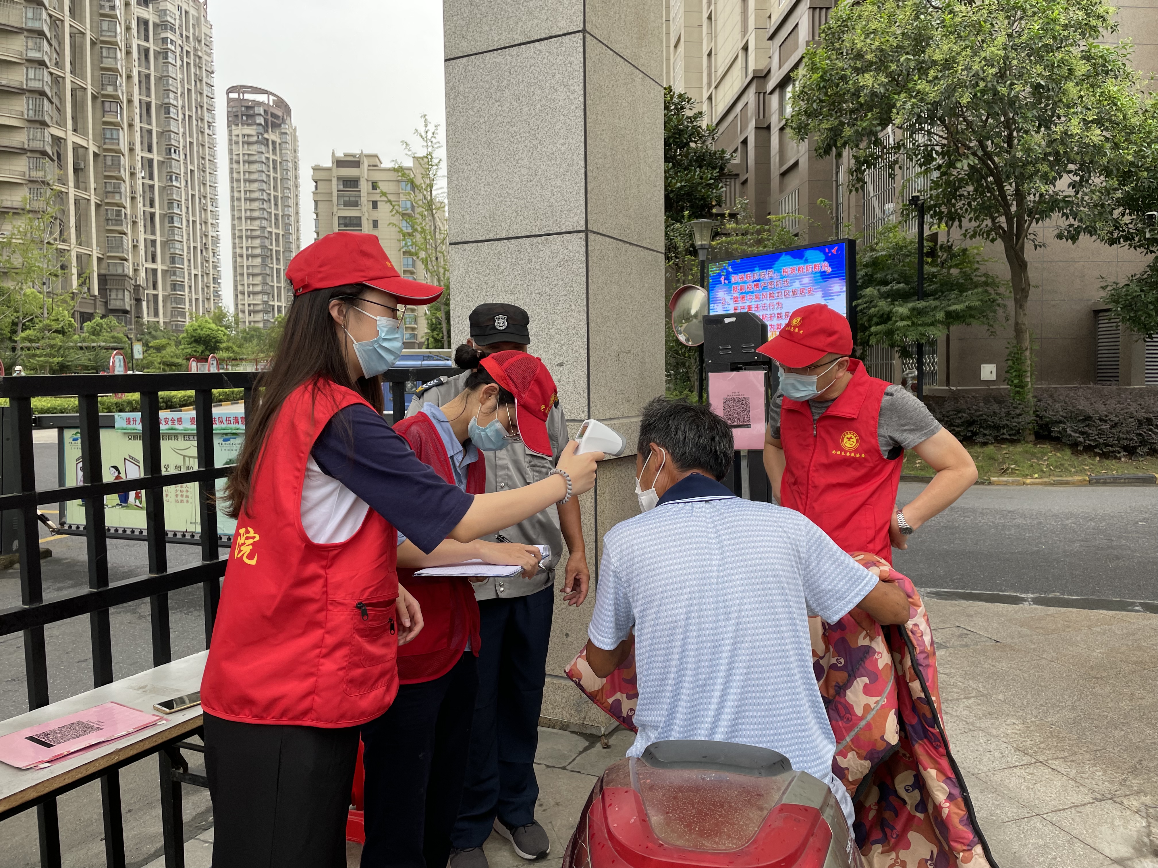 志愿者們按照防疫要求,協(xié)助物業(yè)工作人員核驗(yàn)出入小區(qū)人員,對(duì)外來人員及安康碼異常人員行程進(jìn)行核實(shí)登記,同時(shí)向小區(qū)居民宣傳疫苗接種有關(guān)信息,提醒未接種疫苗的居民盡快完成接種。