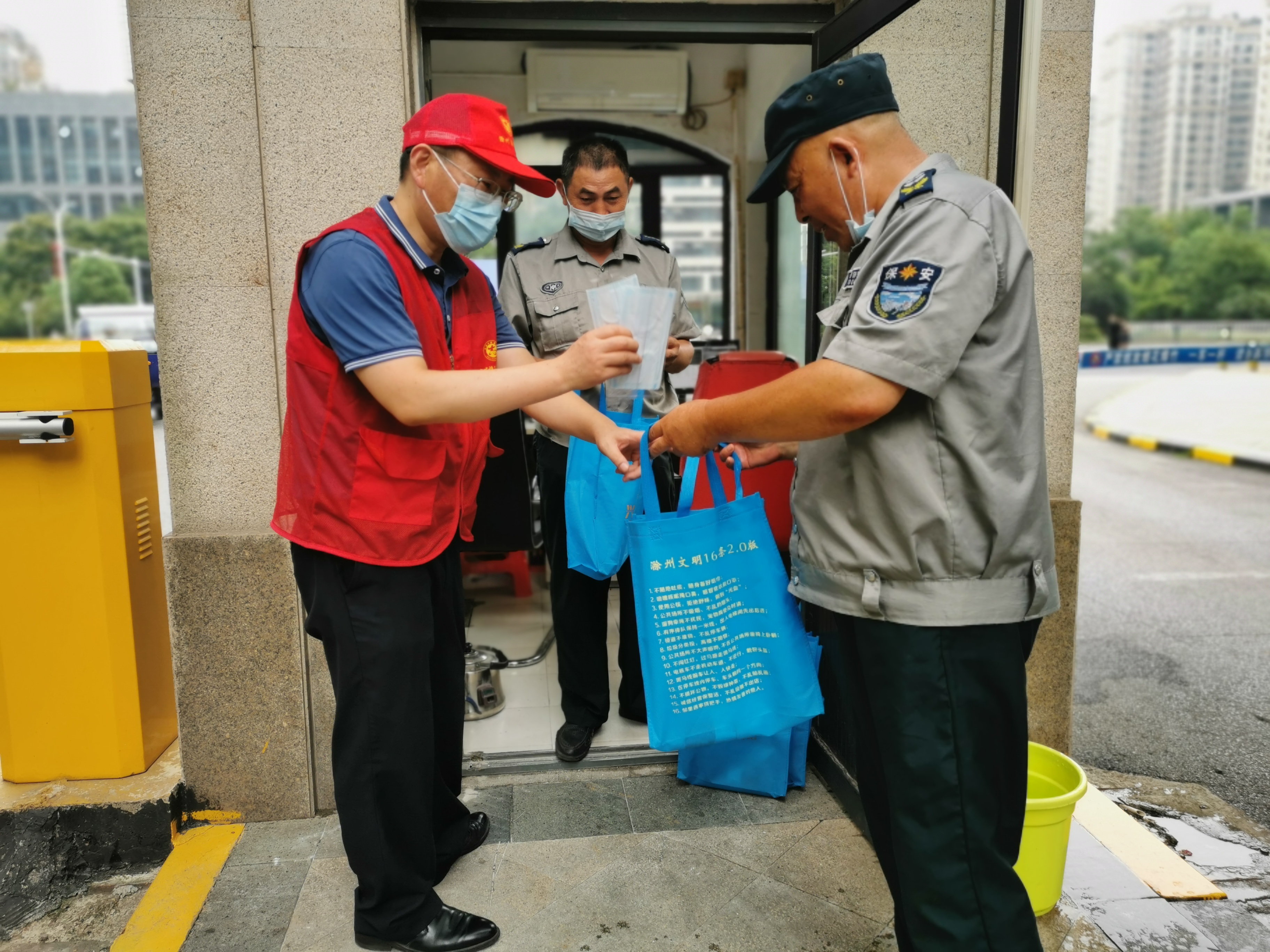 活動(dòng)中,志愿者們還為小區(qū)參與疫情防控的工作人員送去了口罩等防疫物品,并提醒他們?cè)陂_展疫情防控工作的同時(shí),也要做好自身安全防護(hù)。