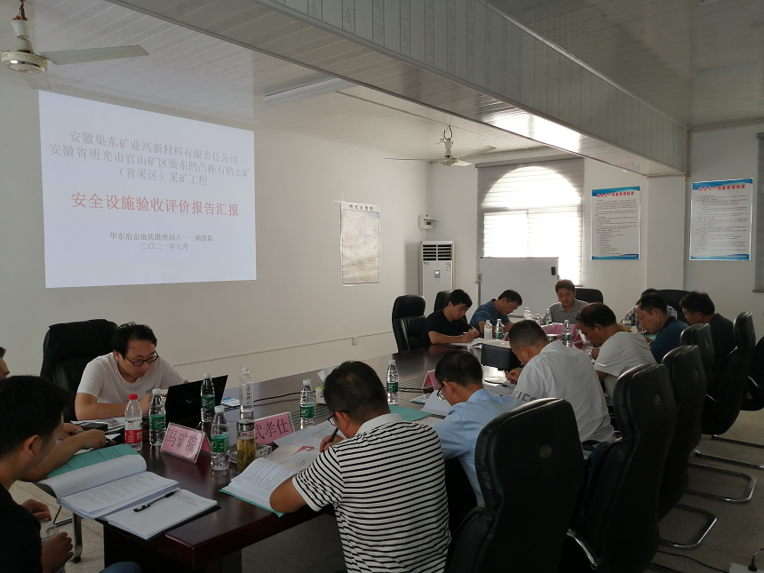 會(huì)議前專家組一行前往巢東礦區(qū)首采區(qū)逐一查看安全設(shè)施的建設(shè)情況,隨后在會(huì)議室分別聽(tīng)取巢東礦業(yè)公司關(guān)于項(xiàng)目建設(shè)和試運(yùn)行情況介紹、瑯琊山礦業(yè)工程公司關(guān)于項(xiàng)目建設(shè)施工情況介紹、華東冶金勘查局八一一地質(zhì)隊(duì)關(guān)于《安全設(shè)施驗(yàn)收評(píng)價(jià)報(bào)告》的介紹,期間專家組針對(duì)現(xiàn)場(chǎng)、驗(yàn)收評(píng)價(jià)報(bào)告以及其他軟件資料給予充分的認(rèn)可,同時(shí)對(duì)存在的問(wèn)題進(jìn)行點(diǎn)評(píng),并要求驗(yàn)收評(píng)價(jià)單位對(duì)報(bào)告進(jìn)一步修改、完善。